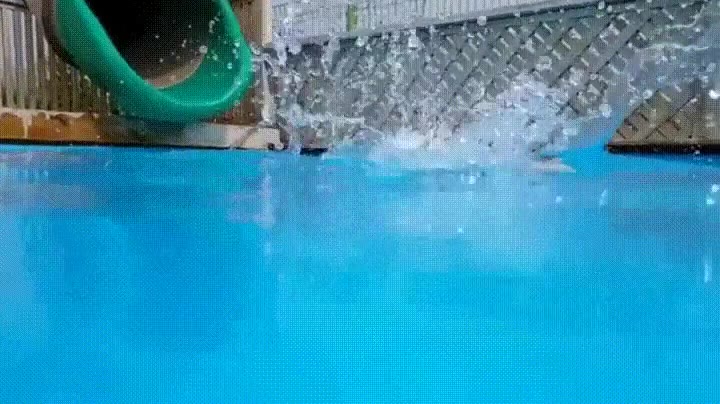 Perro disfrutando al máximo de la piscina