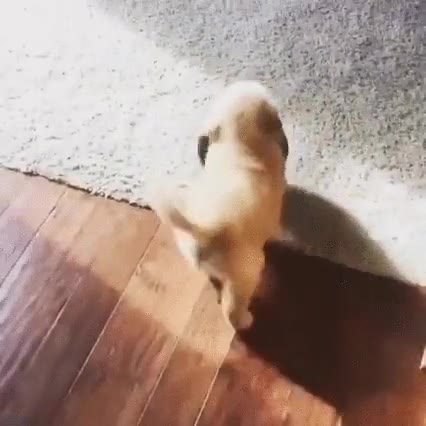 Será un cachorro pero ya ha aprendido a hacerse entender cuando es la hora de comer