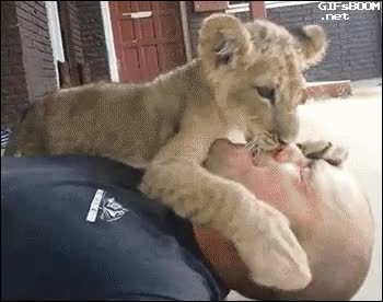 ¡Oh no, ese hombre está en el suelo y un león va corriendo hacia él!