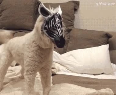 Gato que no se fía ni un pelo de un "perrocebra"